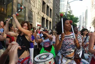 The ladies came out in droves for an unlicensed visibility march from 42nd Street/Bryant Park to Washington Square Park in the West Village. Later that evening, the South Street Seaport's Beekman Beach Club held their Siren NYC Pride Beach Party.